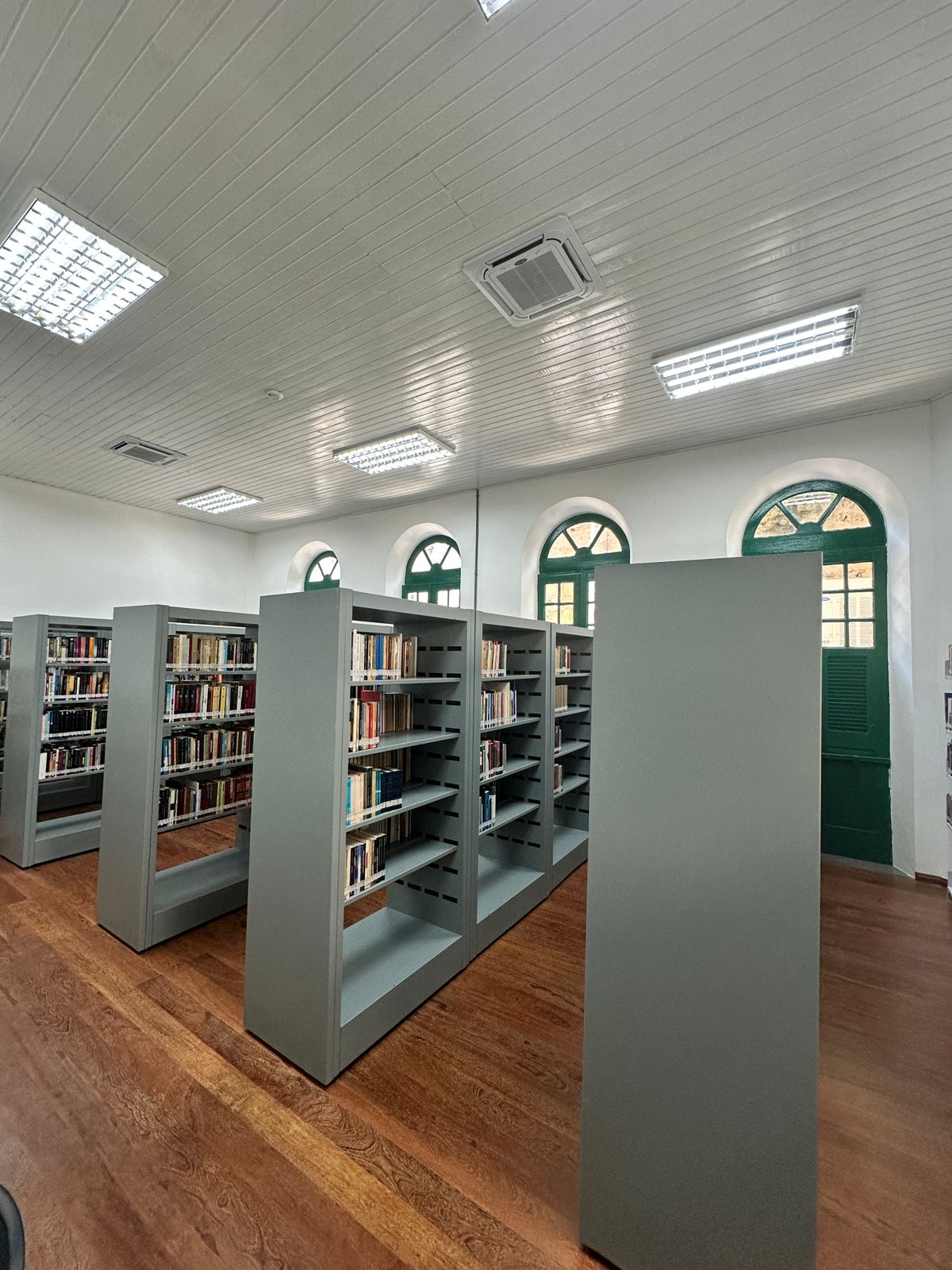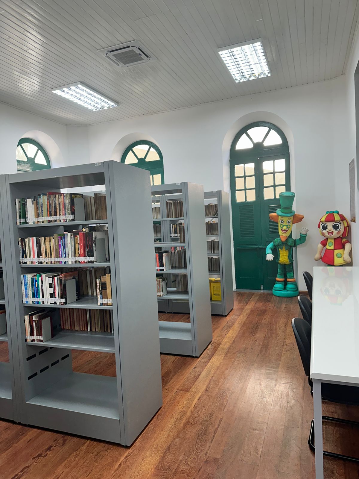 Hoje instalada no Centro Cultural Palácio Bernardino Monteiro, a biblioteca reúne vários títulos, entre obras literárias e enciclopédias, coleções, livros didáticos, revistas e periódicos que compõem o setor de pesquisa.